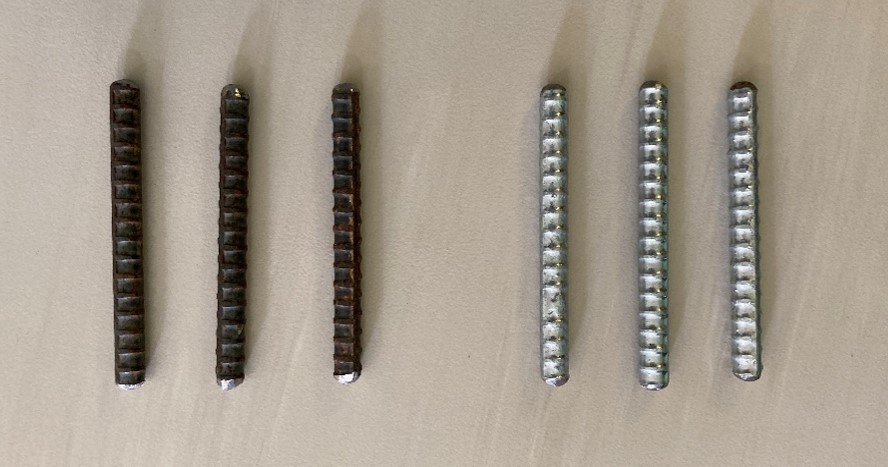 コンクリートの内部の鉄筋がしっかりと支えていることからこそ構造物の耐久性が保たれています。ところが、一般的な鉄筋コンクリートの最大のデメリットは「鉄筋のサビ」による膨張が引き起こす崩壊です。鉄筋がサビて膨張してしまうとコンクリートの支える力が失われてしまいます。そこで、トレドでは亜鉛メッキされた鉄筋を使用しています。亜鉛メッキ鉄筋は、亜鉛によって鉄筋の表面に「皮膜形成」しサビから鉄筋を守ります。亜鉛メッキが溶ける速度は、1年間に1㎛です。トレドで使用している亜鉛メッキ鉄筋の皮膜厚は80㎛以上なので、約80年間はサビることなく使用できる鉄筋と言えます。皆様の大切な外構が安全で、長く使用できるという事がトレドで亜鉛メッキ鉄筋を使用する理由です。また、金額的にも普通の鉄筋とあまり変わらない差額で亜鉛メッキ鉄筋の使用できるよう企業努力をしています。
