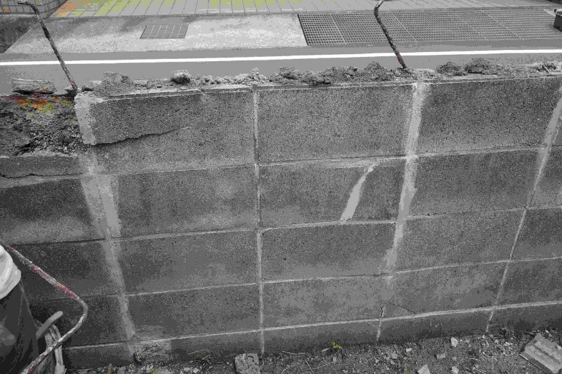トレドではブロックの配筋、土間コンクリートの配筋に使う鉄筋を亜鉛メッキで加工したものを使用しています。ブロックに関しては、亜鉛メッキ鉄筋が標準施工となっています。鉄筋はきちんと配筋し、鉄筋のかぶり厚を20mm、20mm とりモルタルを十分に充填しなければ、強度、腐食などの原因となり崩壊の危険が増します。ただ、鉄筋を配筋するブロックの穴は使用する種類にもよりますが、60mm~70mmのものが多く、このような施工をするのはなかなか難しいです。そんなこともあり、トレドでは使用するブロックもレコム(穴径
