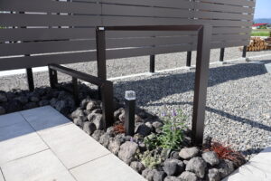 草取りの心配が最低限に抑えられ、目隠しフェンスも設置したお庭なので休日はご家族がゆっくりお庭でお過ごしになれます。