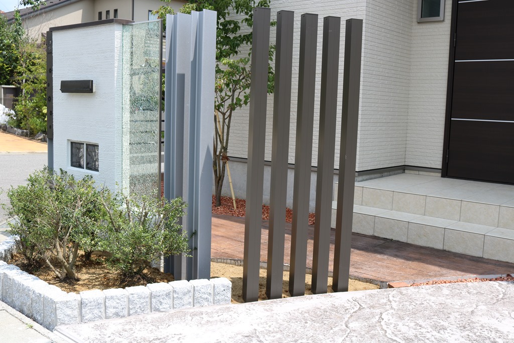 ジュエルグラス門柱+H鋼サインポール・エクステリア照明。