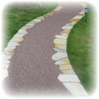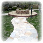 アプローチ(通路)をきれにしたい いろいろな工法があります 現在では、コンクリートの打ち放しという施工がほとんどなく、天然石を貼ったり模様を付けたりする方が多いです。トレドでは、ドリームストーン・クリスタルグレイン・カットダルなどのオリジナル工法を考え、エクステリアが楽しくなるよう努力しています