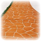 土間の上に型紙を置き色粉を撒き仕上げる工法で、当社は資材を直輸入しているので低価格で施工可能です