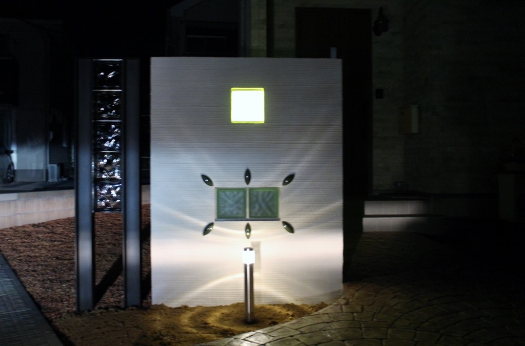 ガラスブロツクサインにLEDテープを巻いた灯り。 2016-11-282019-01-28 by View all posts by toledo ガラスブロックミスト・グリーンを使ってサインを取り付けた門柱、花壇部分にはガーデンポールライトを設置。 ガラスブロツクにLEDテープを巻くとで灯りが点灯すると明るくなりサインの文字も良く見えます。 長野市エクステリア トレドは「プロの庭照明の店」 *ガラスブロツクLEDテープ付きサインの外構施工は長野市内です。