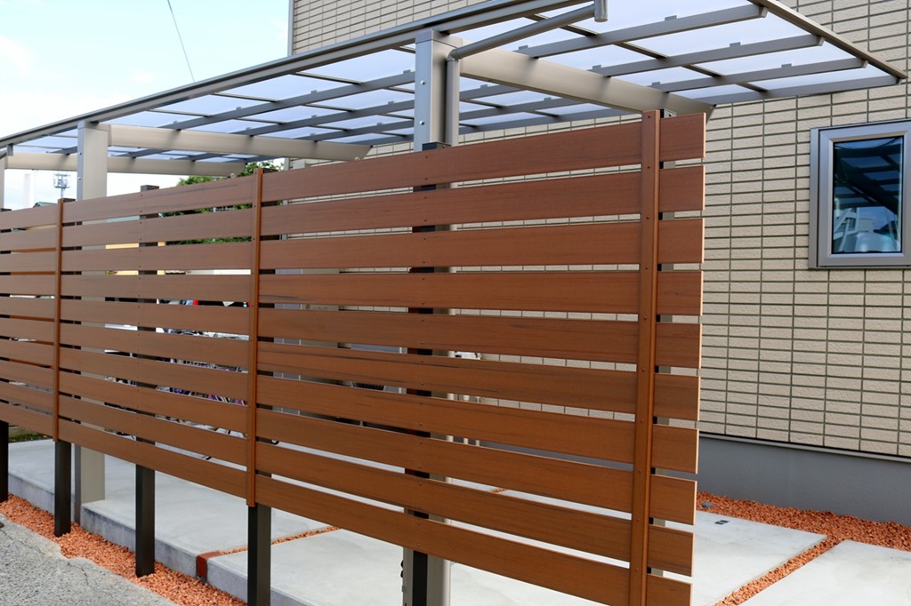カーポートの外は道路になりマイティウッドで目隠し工事をしました。 長野市内