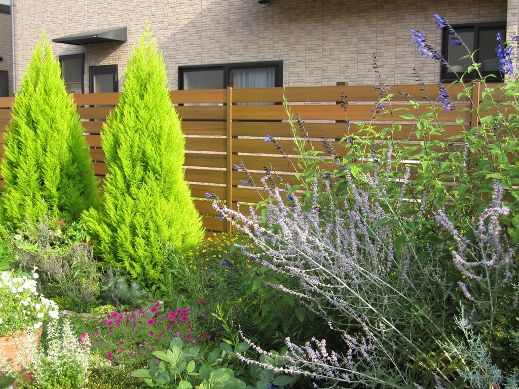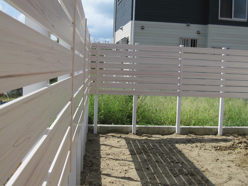 庭と駐車場の堺に目隠しフェンスを施工。 長野市内