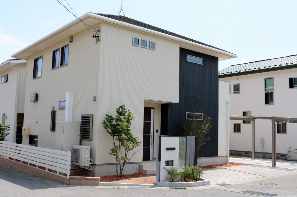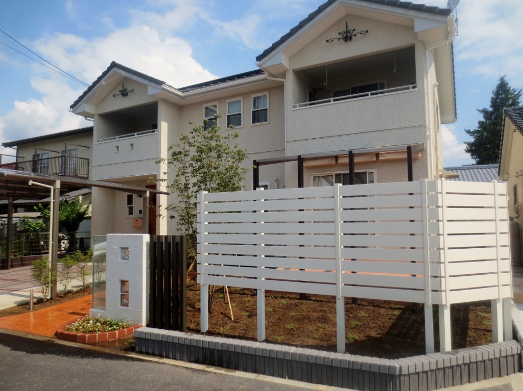建物と庭をマイティウッドのホワイトで目隠し塀を施工した現場です。 小布施町