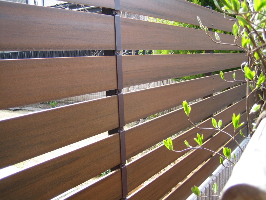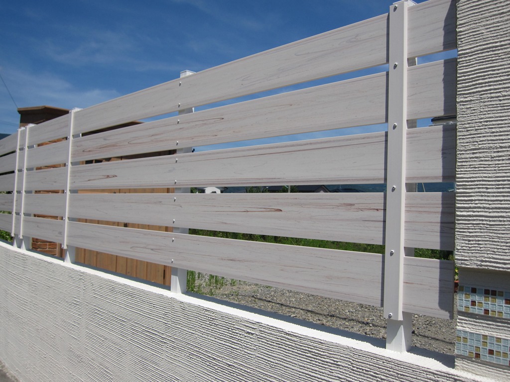 樹脂板と言っても、いろんなメーカーの商品がありますが、当社ではエクステリアで最初に登場した、見た目も良く耐候性の高いアルファウッド(AlphaWood)をお勧めしてしいます。加工しやすいポリスチレンに木目模様を表現したマイティウッド・二重構造により超耐候性を実現したアルファウッドを使用することで気になる外からの視線を遮り、またブロック上のフェンスとして使用してもアルミフェンスのような金属とは違う味わいを感じる事ができます。