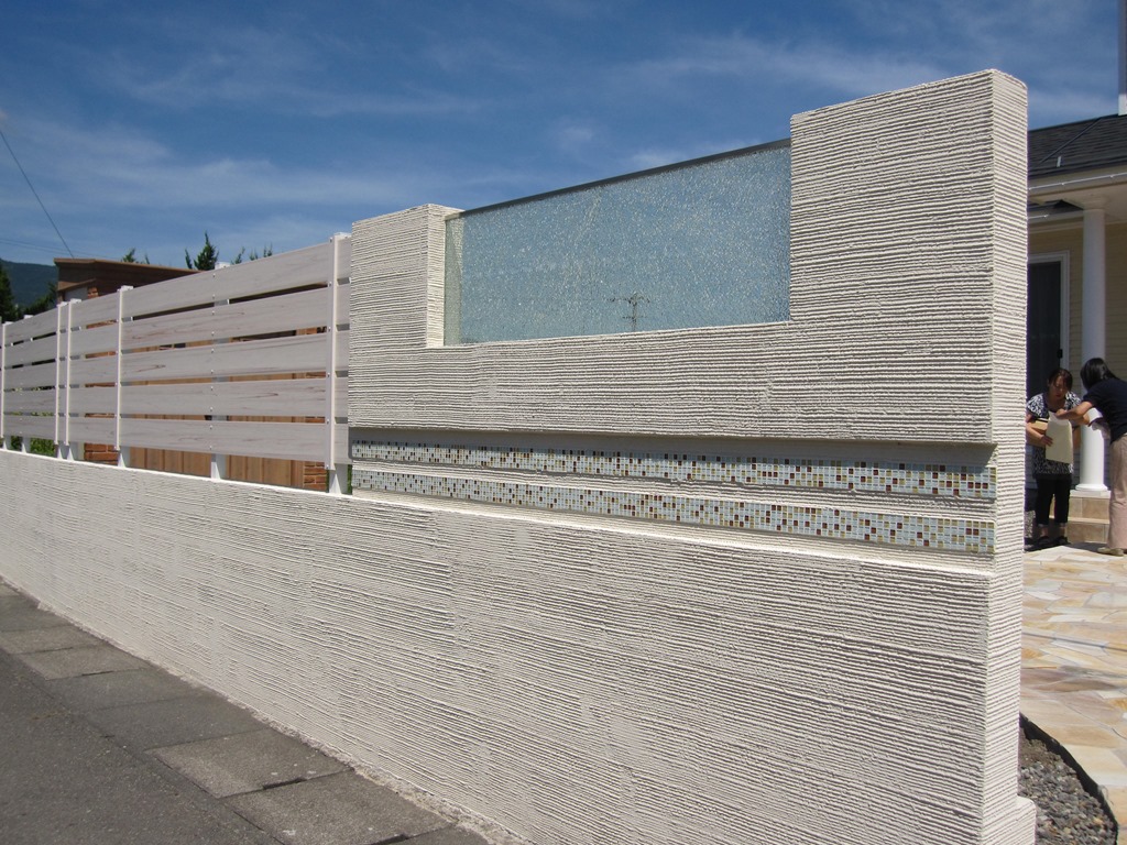塗り塀の横に続けてホワイトのマイティウッドでフェンスにした現場です。千曲市