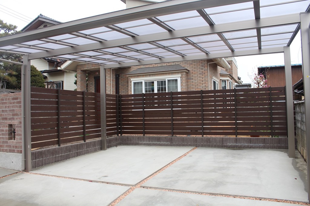 駐車場の回りを樹脂板で囲い敷地内の目隠し