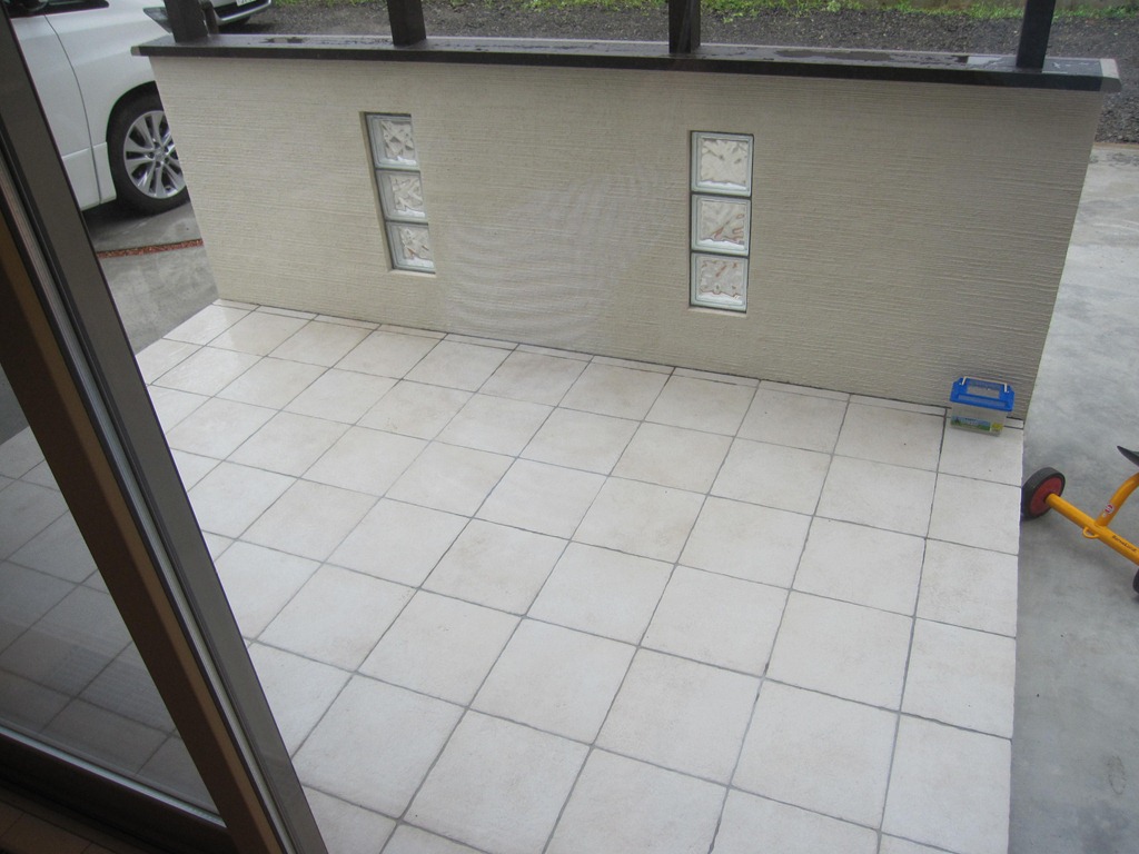 何と言ってもタイル貼りのテラスは、手入れが簡単です、木樹脂のウッドデッキは、腐食はしないのですが、火には強くないのでバーベキューナドには不向きですし、表面にはシミが付き見た目にはかなり良くありません、それと比べてタイルは、水洗いで簡単に綺麗になります。