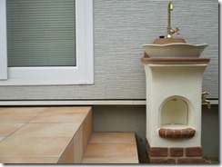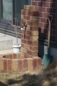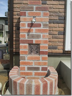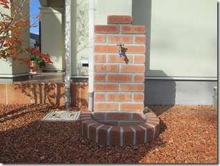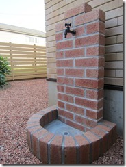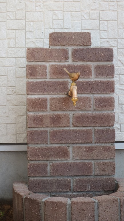玄関のすぐ横にあった不凍栓の前にレンガを積み上げ、蛇口もおしゃれなものに変えています、水受け部分もレンガを立てRにしているので、玄関横にあっても違和感はそれほどありません、不凍栓は以外とよく見える場所に設置されている事が多いので、レンガで隠すだけでも雰囲気は全然変わります。