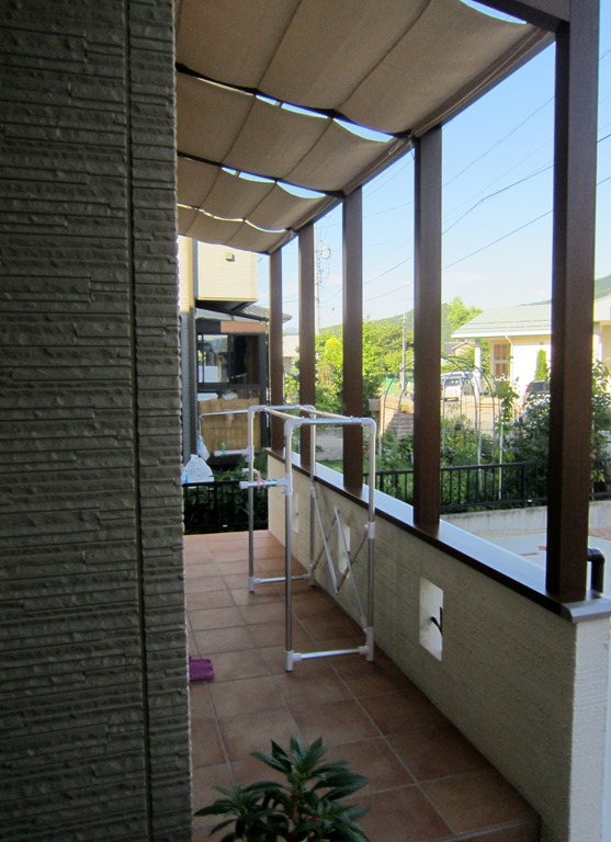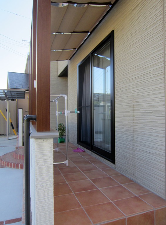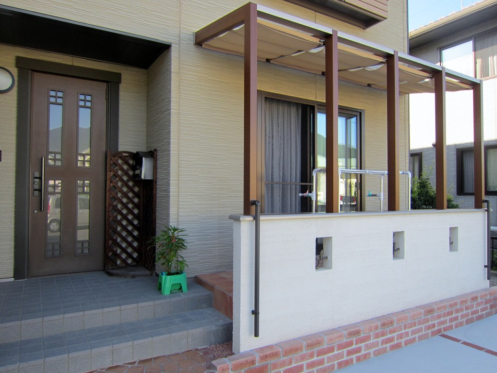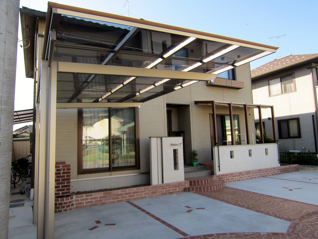 敷地に車が4台止める事が出来るスペースがあり、玄関横の和室の前にココマテラスを取り付けました。