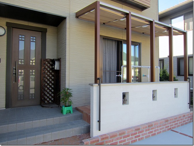 玄関横の和室の前にココマテラスの腰壁タイプを施工しました。 前が駐車スペースになっていて腰壁を作る事で使い易くなるようにしました。