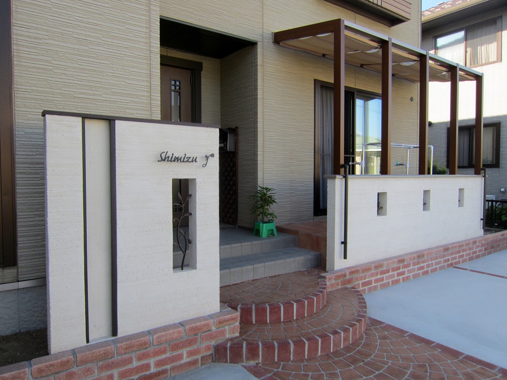 玄関横に腰壁タイプのcocomaテラスを施工。