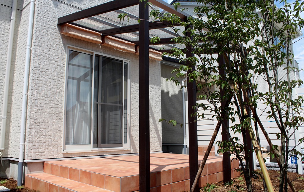 以前だったら、リビング前にウッドデッキを取り付ける事が多かったです、でもその空間を利用するには屋根を取り付けた方が使い易いはずです。