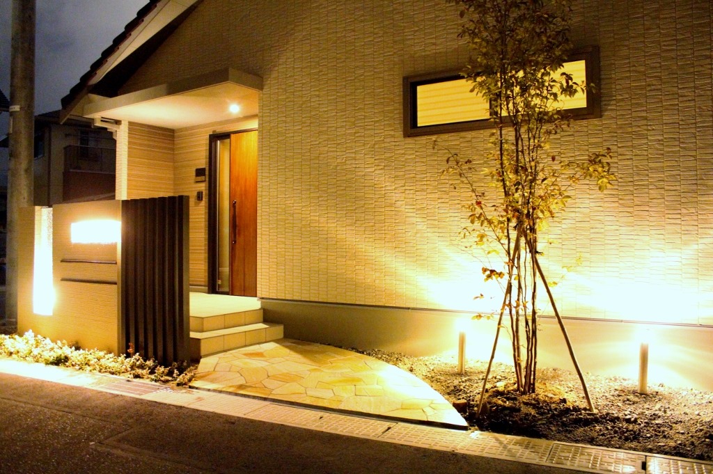 エクステリアのデザインを考える時には、昼間だけではなく夜になってもエクステリアが素敵に見えるように工夫しています、特にジュエルグラスを使用したエクステリアでは、必ずと言っていいほどLED照明を取り入れています。
