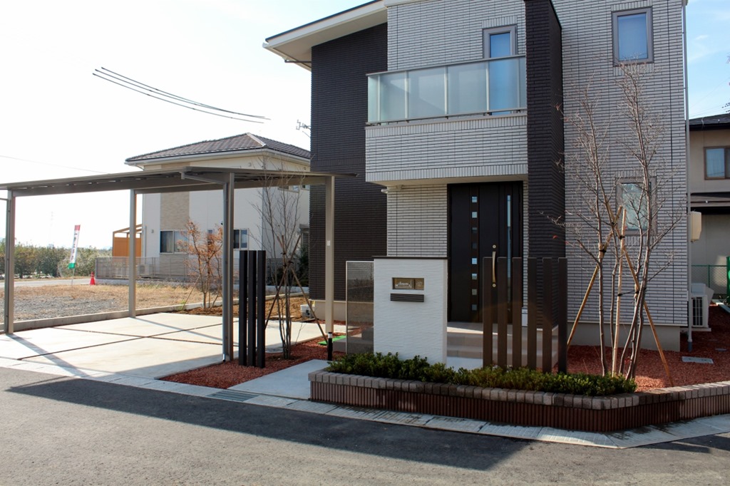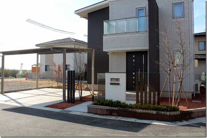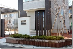 ジュエクグラスカラー・ブラウンを取り付けた門柱デザイン。