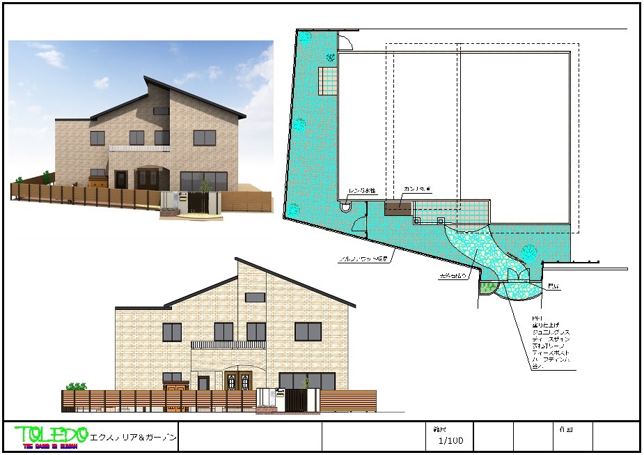 門扉のあるクローズ外構デザイン。
