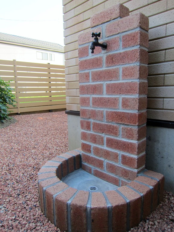 お洒落な物置・煉瓦積み立水栓。