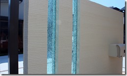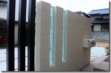 門柱を裏側から見るとスリムジュエルのブルーに光が透過して輝いています。