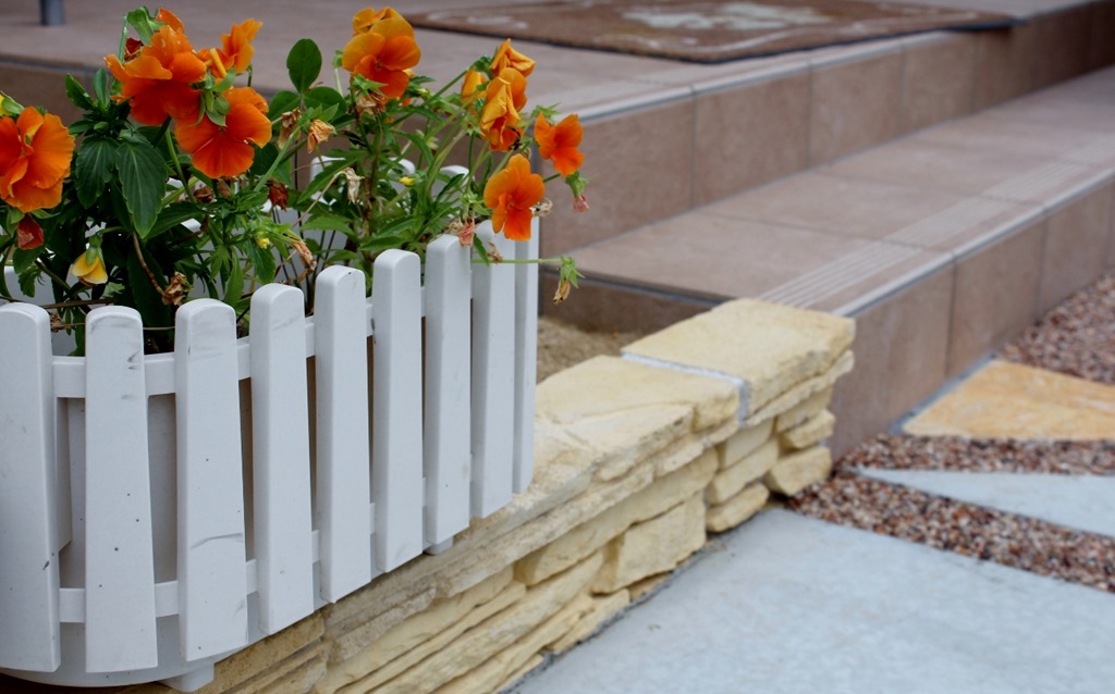 玄関の奥にブラッドストーンのマドックZで花壇スペースを作りました。