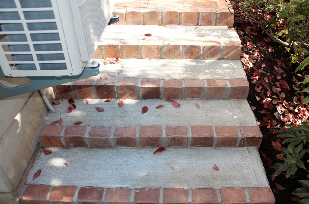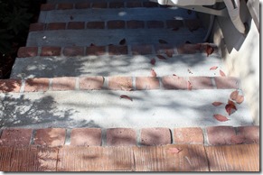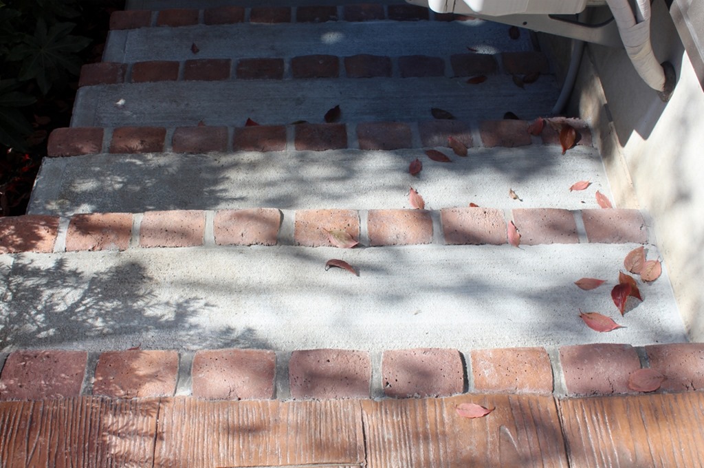 駐車場以外にも、コンクリートで隣の建物に行ける階段もコンクリートで立ち上がり部分にレンガを建てました。
