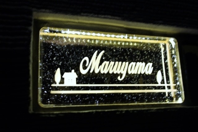 ベネチアンガラスブロックサインはトレドのオリジナルサインで自社で制作しています。 門柱に取り付けられているサインは、LEDテープを巻いているので夜になると綺麗に見えてきます。