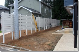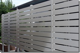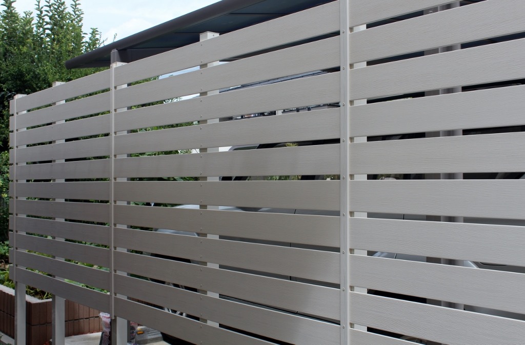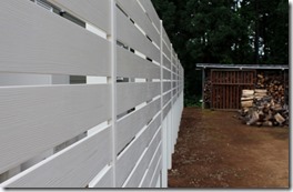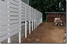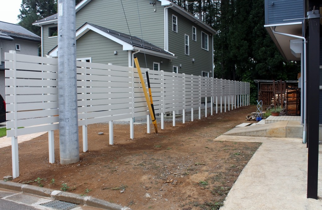 アルファウッドを枚数を変えて施工 2017-07-162018-11-10 by View all posts by toledo 隣地の境界の長さが30メートル程ある直線に樹脂板アルファウッド・アイボリーで施工しました。 道路側の手前部分を11段張りにして奥の方は7段張りにしました。 アルミ柱の高さは合わせているので下の隙間の空きが変わっています。 長い隣地境界の樹脂板施工は飯綱町です。