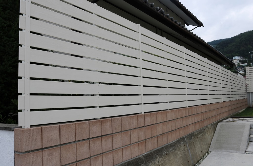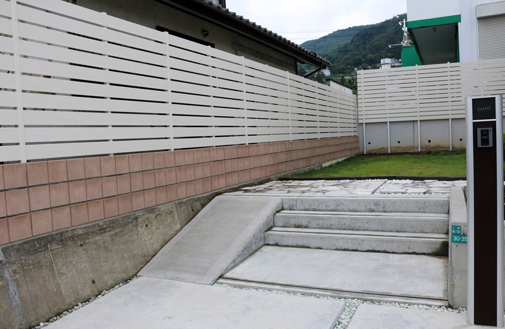 最高の高さの樹脂板目隠し。 2017-07-162017-12-15 by View all posts by toledo ブロック上と地上から柱を立てて施工して樹脂板の目隠し工事です。 南側の基礎上ブロツク積み樹脂板は基礎から210センチ近くの高さで西側の隣地の敷地が1メートル以上の高さがあり、当社が施工した樹脂板施工としては高さが300センチ近くあり最高の高さの現場です。 近年のエクステリア工事には目隠しの樹脂板が欠かす事の出来ない存在になっています。 ブロツク上と地上からのふたつの施工方法で目隠し工事をした長野市の現場です。