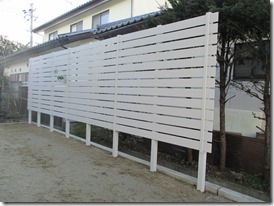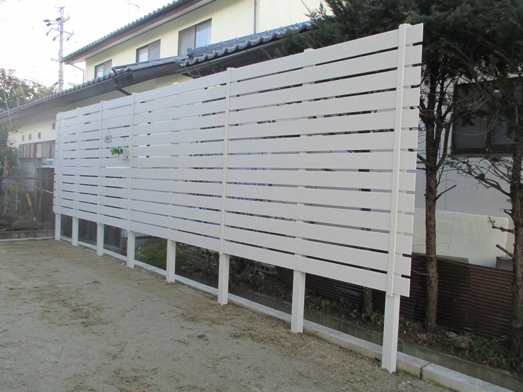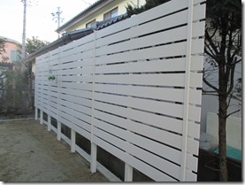 南側の境界にアルファウッドアイボリーで樹脂板目隠しを施工した時の写真です。