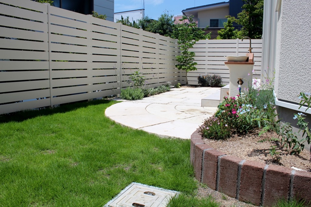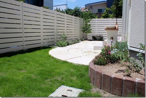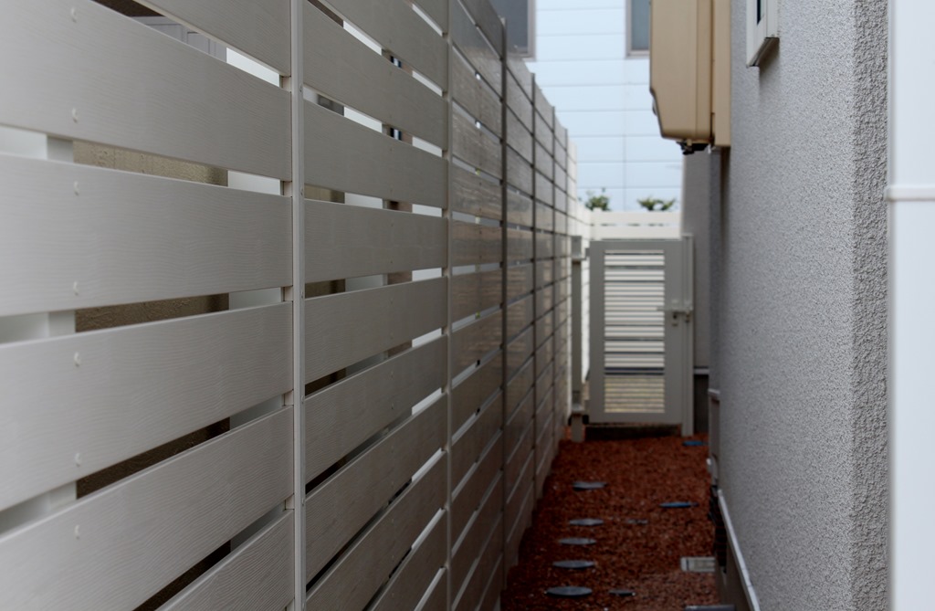 南側にある庭の南側・東西を樹脂板で囲むように施工されています。