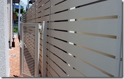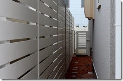 愛犬を庭に離すので、建物の東西の樹脂板塀との隙間に扉の施工もしています。