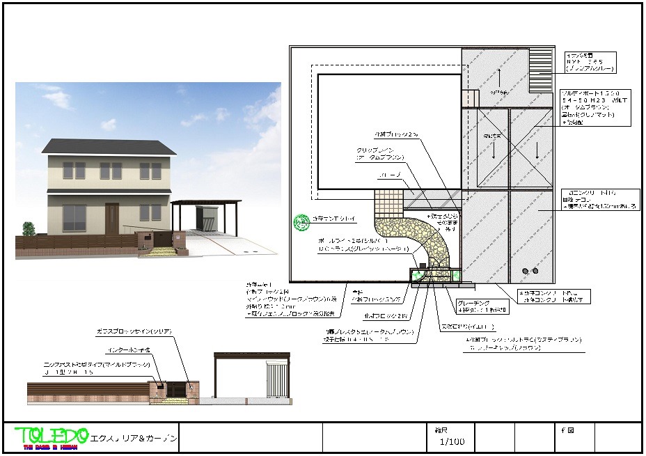 建て替えの現場のデザインは敷地が高く道路からの視線が気になるお客様の要望で既存基礎の上に化粧ブロツクを積み、樹脂板を使用して目隠しにしました。 両側にブロツク門柱を立てアルミ門扉を取り付けたクローズ外構です。4台分の車が駐車できるスペース駐車場から玄関までのスロープ。   長野市の外構デザイン