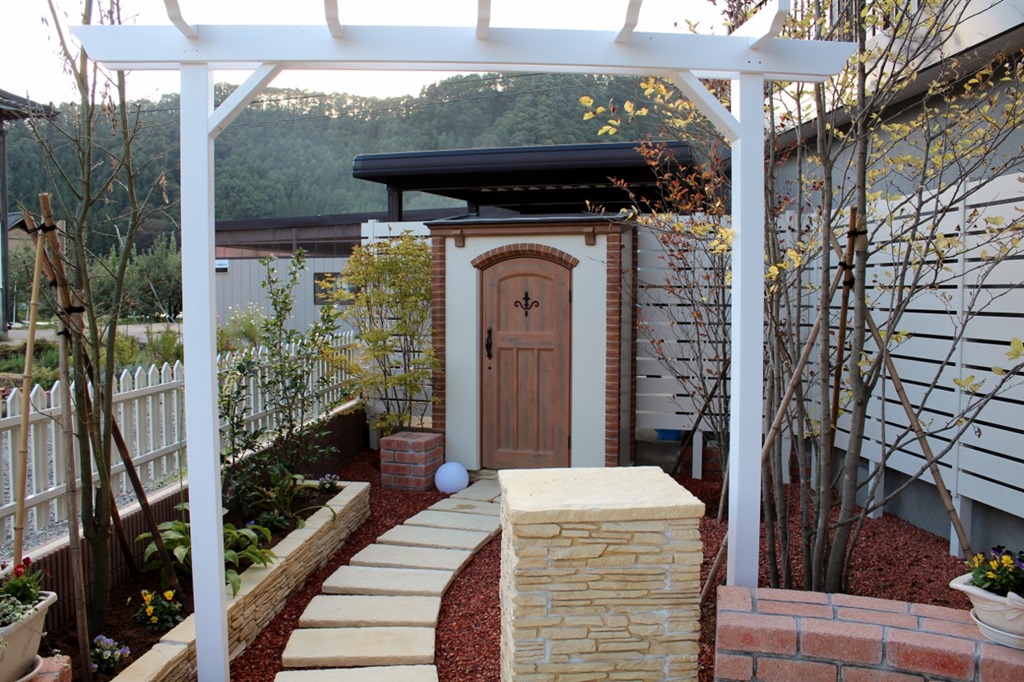 庭を引き立てる樹脂板塀。 2018-03-252018-09-19 by View all posts by toledo エクステリア工事で庭のリフォームをした庭の奥にお洒落なカンナキュート物置を設置して本来であれば道路側境界に目隠し塀を施工しますが、建物側に塀を施工して庭の空間が素敵に見えるように施工した山ノ内町の外構。 ディーズガーデン耐候性樹脂フェンス材AlphaWoot「アルファウッド」Aiborī「アイボリー」は庭のグリーンに良く合います。