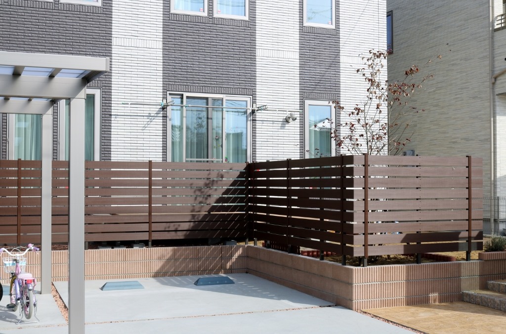 駐車場と庭の境に樹脂板フェンス。 2018-03-252018-09-27 by View all posts by toledo 駐車場以外は敷地の高い現場のエクステリア施工でアルファウッド耐候性樹脂板でブロック上にフェンスとして取り付けています。 ディーズガーデン耐候性樹脂板 AlphaWoot Dīpuburaun「アルファウッド・ディープブラウン」長野市内のエクステリア。
