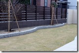 道路側の基礎上に化粧ブロックを積んでAlphaWoDīpuBuraun「アルファウッド・ディープブラウン」を施工した長野市内のエクステリア。