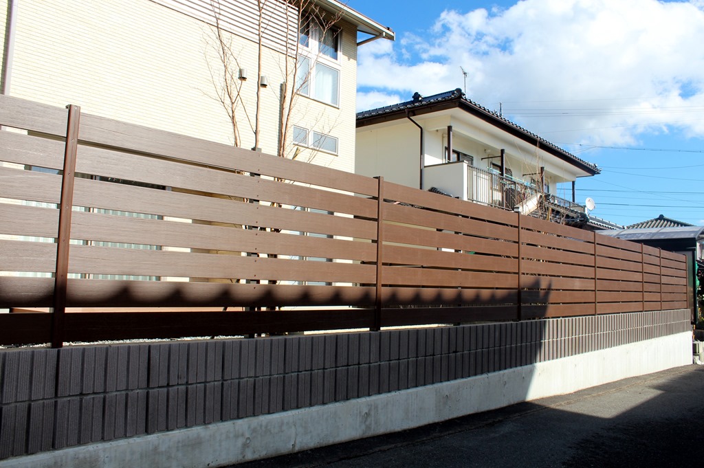 道路面を樹脂板フェンスで施工 2018-03-252018-06-01 by View all posts by toledo 道路側の基礎上に化粧ブロックを積んでAlphaWoDīpuBuraun「アルファウッド・ディープブラウン」を施工した長野市内のエクステリア。 樹脂板フェンスのアルファウッド・ディープブラウンは当店でアイボリーカラーと同じぐらいの人気の色です。