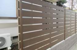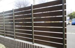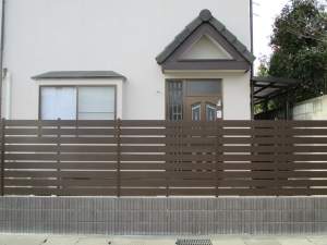 気になる道路からの視線を隠す。 2018-03-252018-09-27 by View all posts by toledo 玄関から道路までの距離があまりなく、外からの視線が気になるので化粧ブロックを3段積んだ上に耐候性樹脂板フェンスを9段張した千曲市の外構。 道路境界に施工する時にはアルミ柱の外側に樹脂板を取り付ける外張になります。デイーズガーデンAlphaWoDīpuBuraun 「アルファウッド・ディープブラウン」