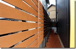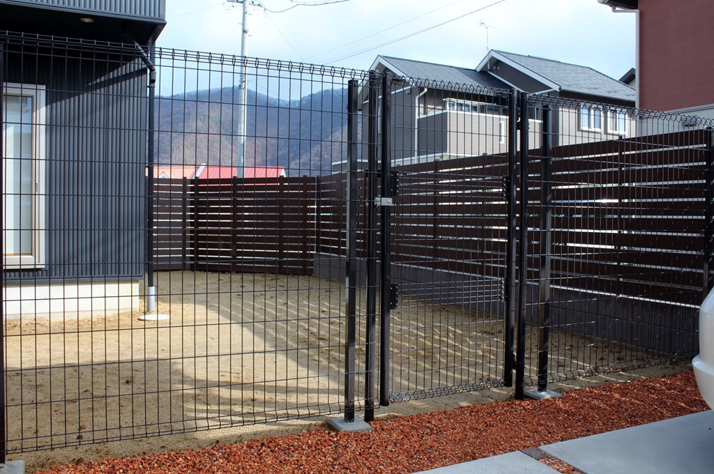 ブロック上10段張樹脂フェンス目隠し。 2018-03-262018-11-10 by View all posts by toledo 外構で境界に化粧ブロックを2段積み、その上に樹脂フェンスを10段張した千曲市の施工、ブロック使用の場合の樹脂フェンスの取り付けはブロツク上から10段「H-1400」以内の高さで仕上げています。 駐車場の後ろ側に高さのあるハイグリツトフェンスを施工、境界側はアルファウッドで目隠しして庭に大型犬を遊ばせています。 デイーズガーデン樹脂フェンスAlphaWoDīpuBuraun 「アルファウッド・ディープブラウン」