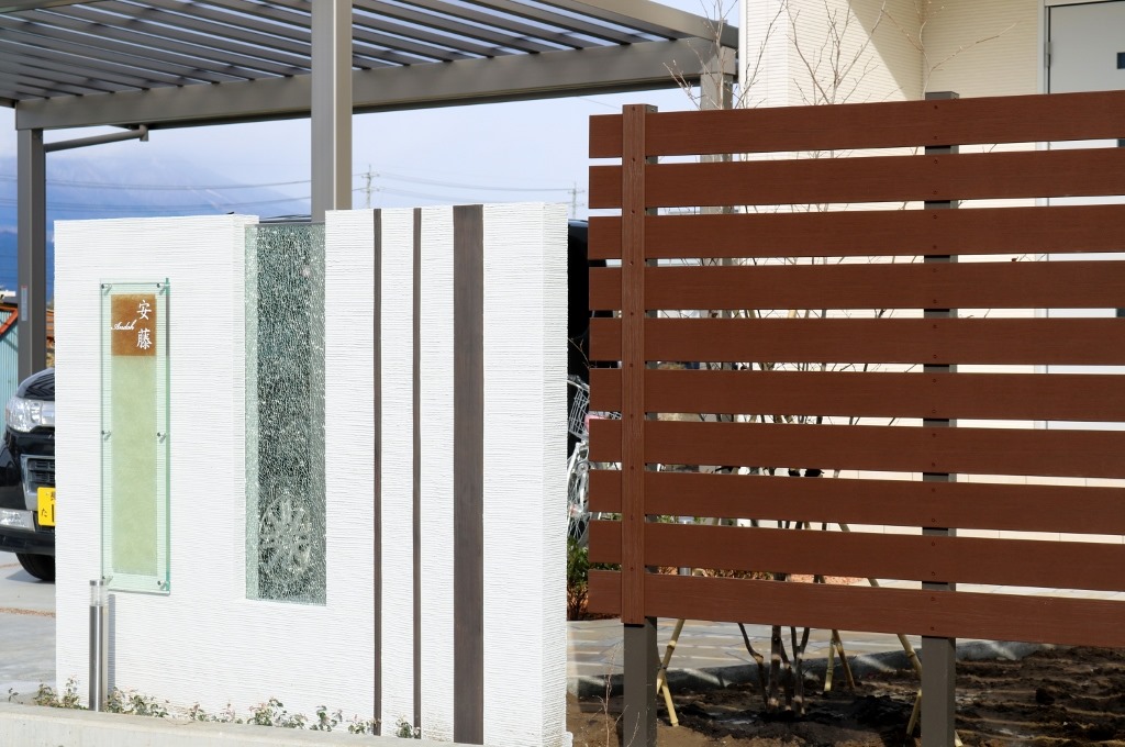アルファウッド 道路側境界に目隠し 2018-03-262018-11-06 by View all posts by toledo 門柱に続く道路側の境界に耐候性樹脂フェンスで目隠し塀を施工した長野市内の外構。 庭の道路側には用水もあり転倒防止を兼ねた目隠しをAlphaWoDīpuBuraun 「アルファウッド・ディープブラウン」70角アルミ柱使用10段外張。