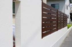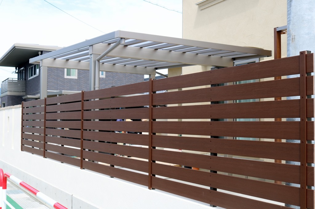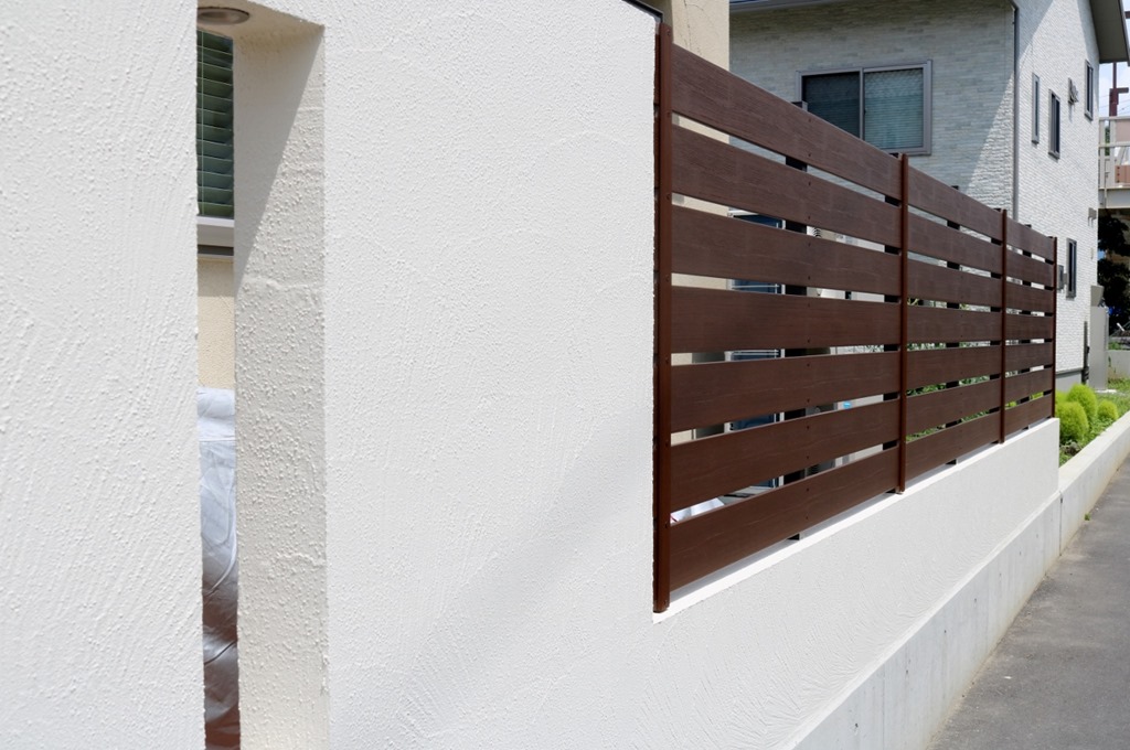 樹脂目隠しフェンスはエクステリアデザインに欠かせない 2018-03-312018-11-10 by View all posts by toledo 樹脂フェンスはエクステリアデザインに欠かせない商品になっています。耐候性樹脂フェンスを使用した長野市内のエクステリアデザイン。 TaikōseiJushiFensu 「耐候性樹脂フェンス」 AlphaWood Dīpuburaun「アルファウッド・ディープブラウン」ブロック積み上使用アルミ40角柱8段外張り。