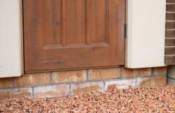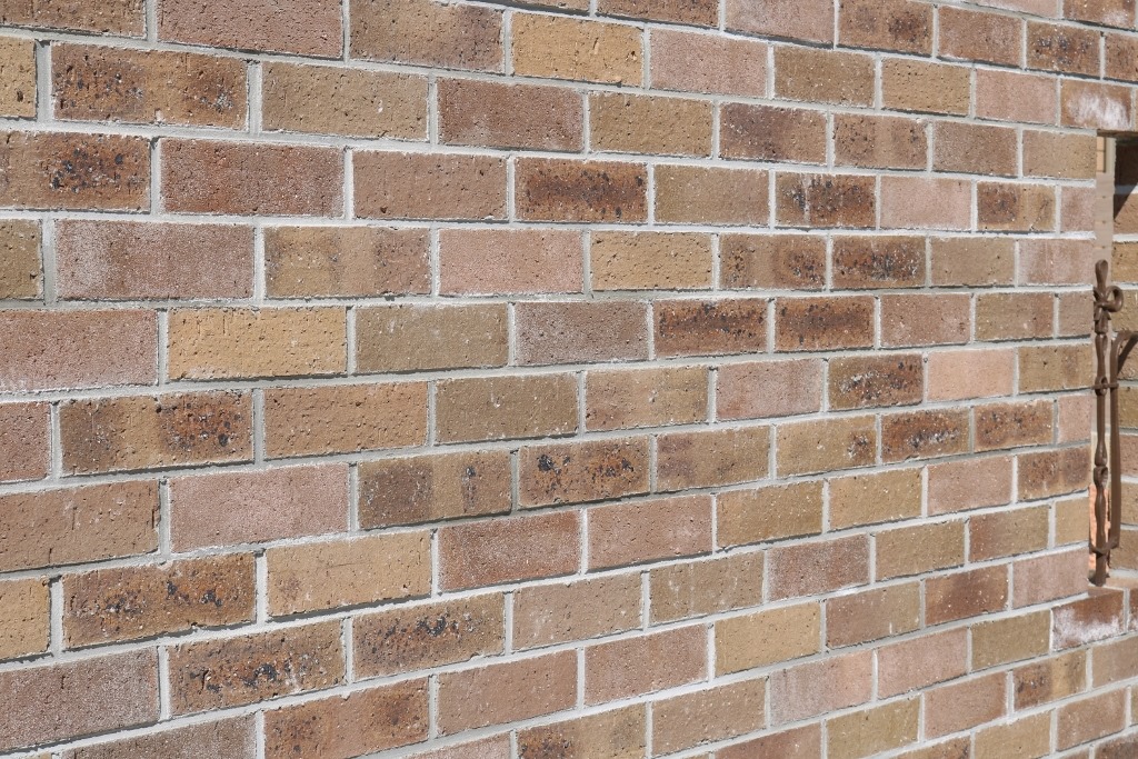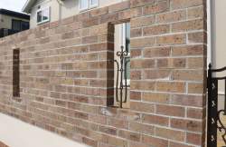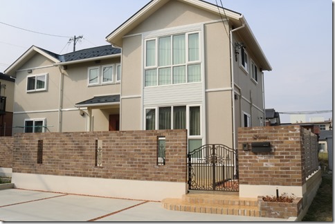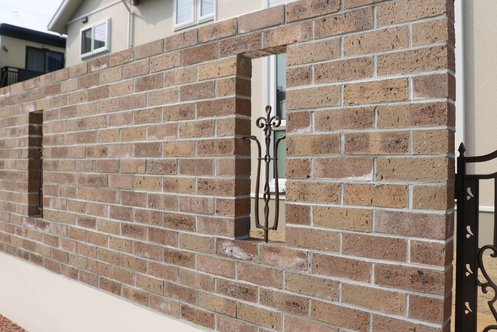 エクステリア工事の門柱と塀を合わせて1.347本の煉瓦を積み上げた長野市内のエクステリアです。 レンガは花壇・通路階段立ち上がりを含めてロイヤルパインのアンクル・パインボア・チャッドウッドの三色を混ぜて施工しています。