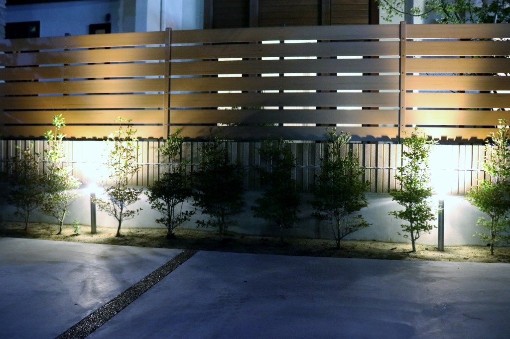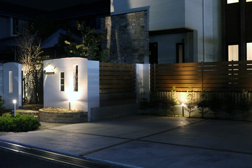 現在のエクステリアには欠かす事の出来ない夜間照明、照明を取り入れるだけで素敵な外構に仕上がります。