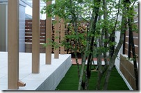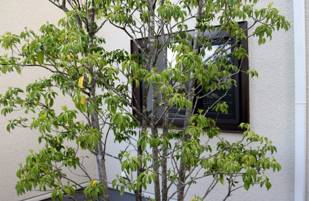 門柱の裏側にヤマボウシとシャラ・テラスの前にモミジとジュンベリー・お風呂場の前に目隠しを兼ねて常緑のソヨゴを植えました。
