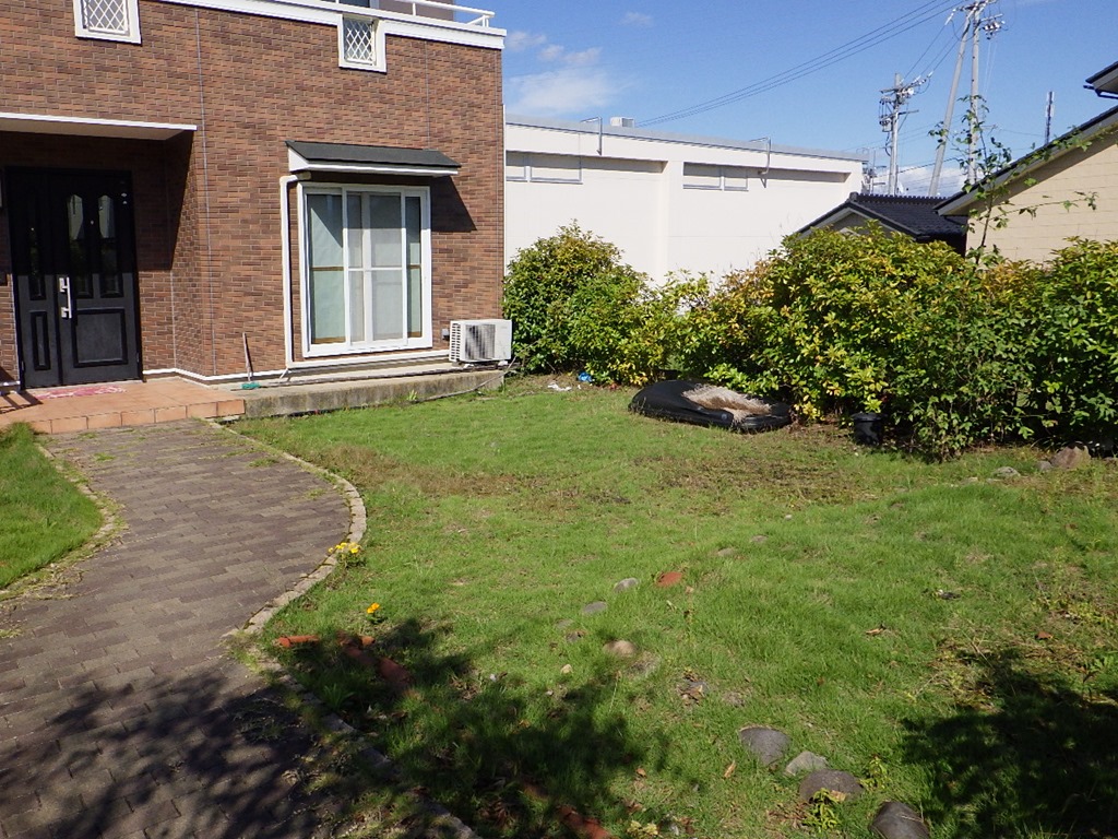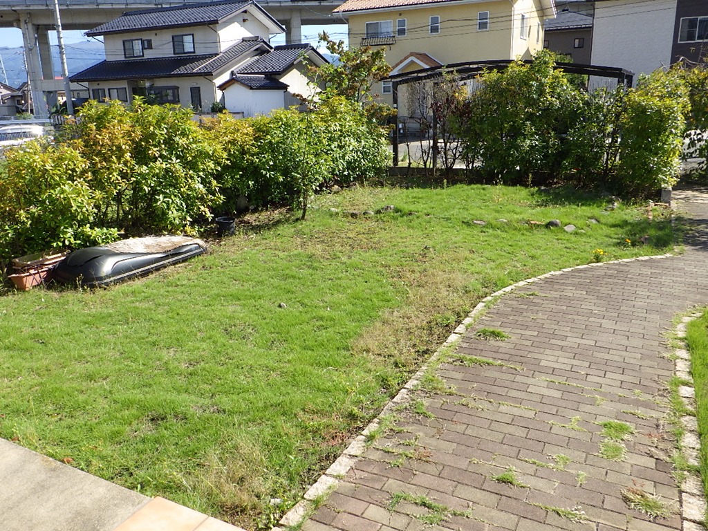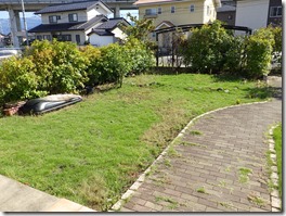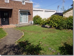 庭のリフォームで広い庭が、手入れが楽になり今迄以上に使用しやすくなるように施工をさせて頂きました。 既存のアプローチ(通路)部分を残し両側面を側高麗芝とコクンリートに分けての施工です。