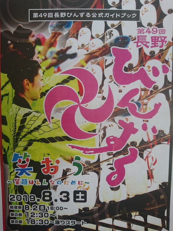 長野びんずるに参加します 2019-07-122020-12-24 by View all posts by toledo 長野びんずるの夜の部で踊りの連に参加します。 当社の連のスタート位置は、中央通りの末広町からトイーゴの直線道路のどこかになります。 お祭りにお越しの際は是非お声掛けください。