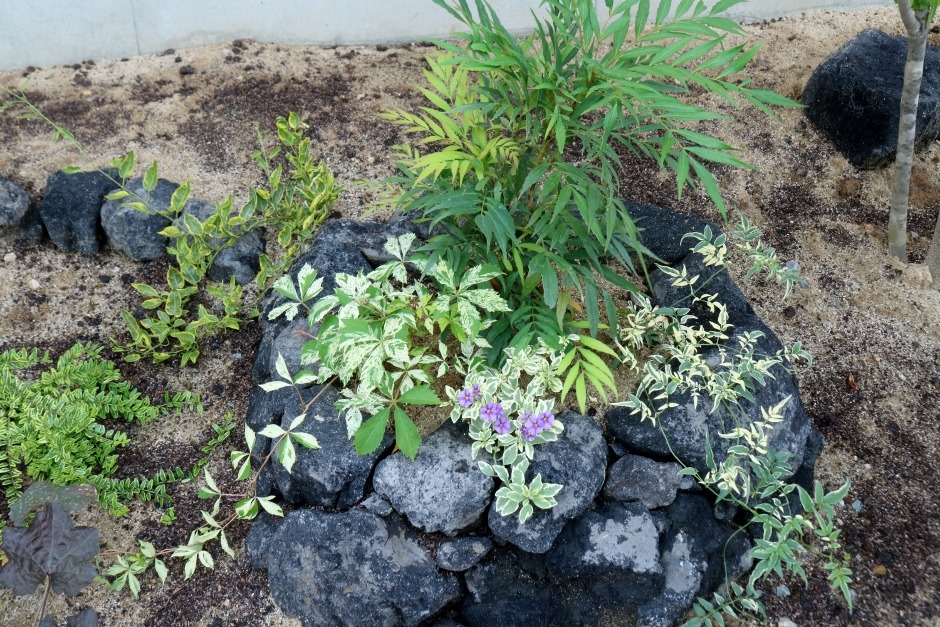 ボリュームを出したいところは力強く植栽し力を抜くところは弱くすることで奥行きが感じられるようになります。