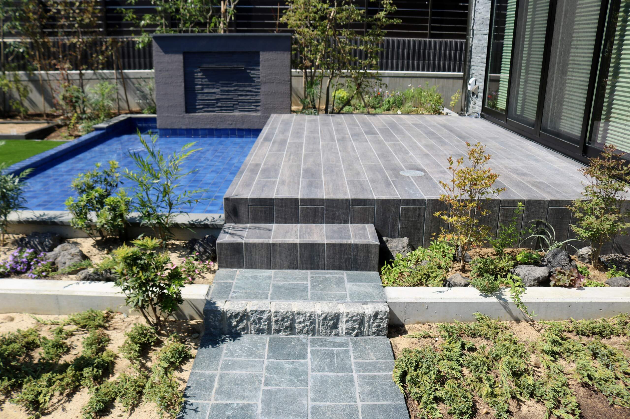 統一感、開放感のある構造物それに負けない植栽