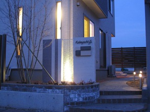 ジュエルグラスを照らす須坂市のエクステリア。