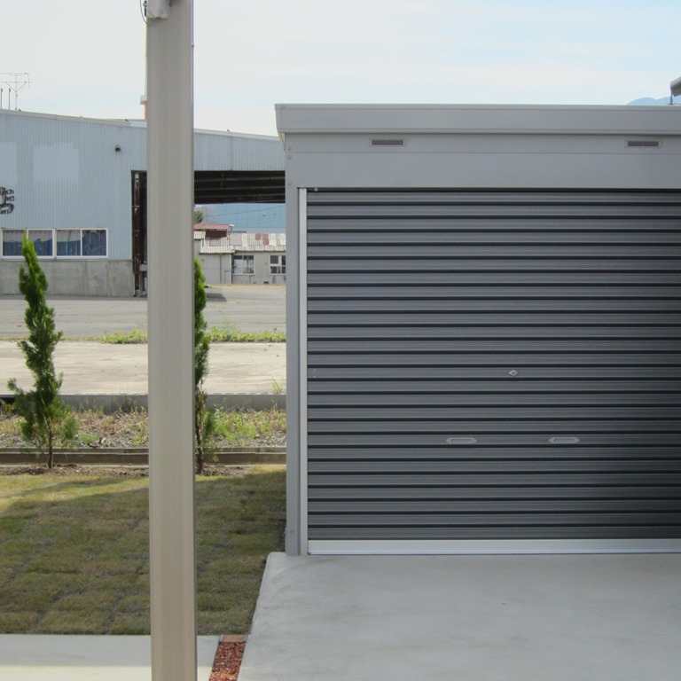 予備スペースの駐車場の奥に、イナバのバイク庫を建てました。